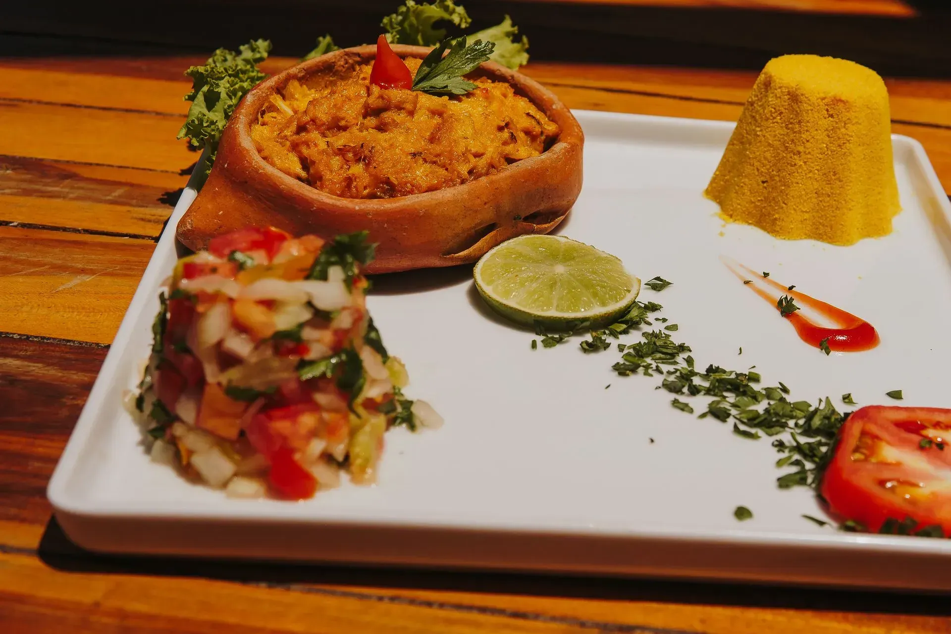 O café da manhã traz frutas da estação, pães frescos, bolos caseiros e tapiocas feitas na hora. No Restaurante Azzurro, a cozinha baiana se mistura com pratos mais contemporâneos, sempre de olho no frescor dos ingredientes.